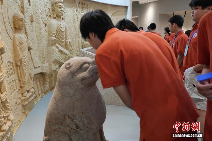 图为海外华裔青少年参观古代墓志像。连晨宇 摄