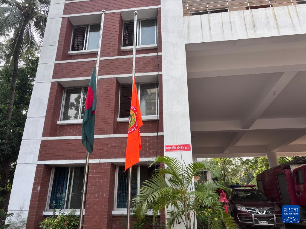 7月22日,在孟加拉国首都达卡,当地一消防和民防站降半旗。新华社发(哈比卜·拉赫曼摄)
