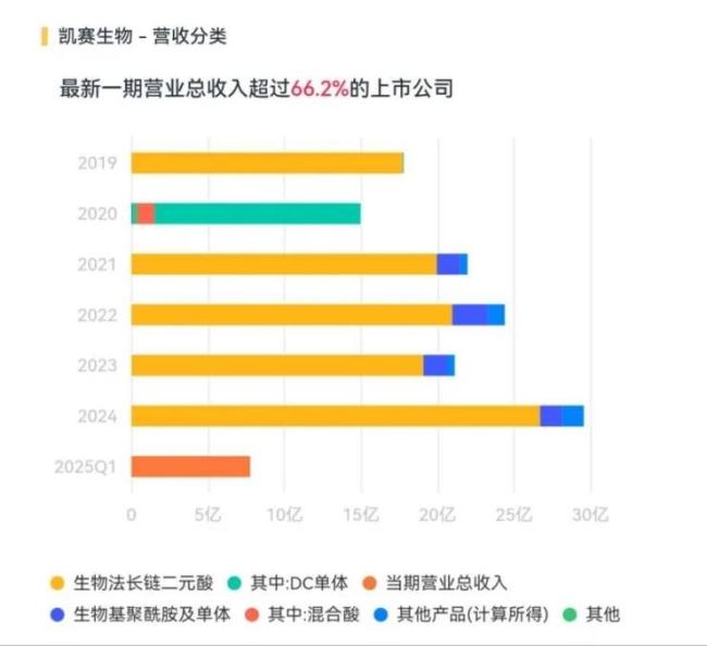 凯赛生物的主营产品包括两块:长链二元酸系列、生物基聚酰胺系列。其中生物法长链二元酸2003年量产,是近年来增长的主力,生物基聚酰胺系列则是最近几年的新业务,直到2021年年报才开始单独披露收入,增长相对缓慢。