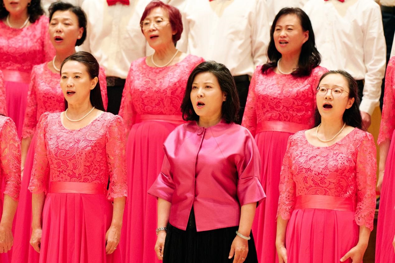 音乐会活动现场,中国驻英大使馆合唱团成员参与合唱《保卫黄河》以及《我的祖国》。杨浩鹏摄