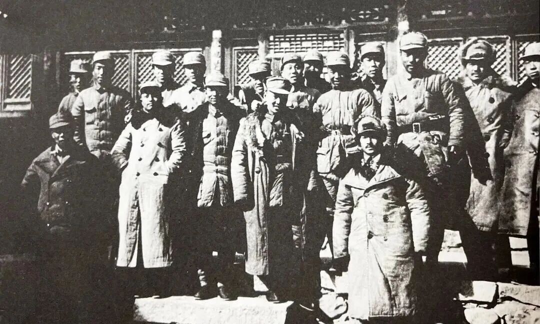 1940年2月,晋西北党政军干部在山西岚县史家庄。