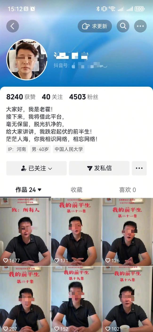 除了道歉视频,该账号从9月20日至23日共发布了24个视频,霍某分段讲述了自己的一些经历。在评论区,有网友劝霍某以后不要太狂,好好做人,也有人认为他应该早点拿出这个态度,希望他吸取教训。