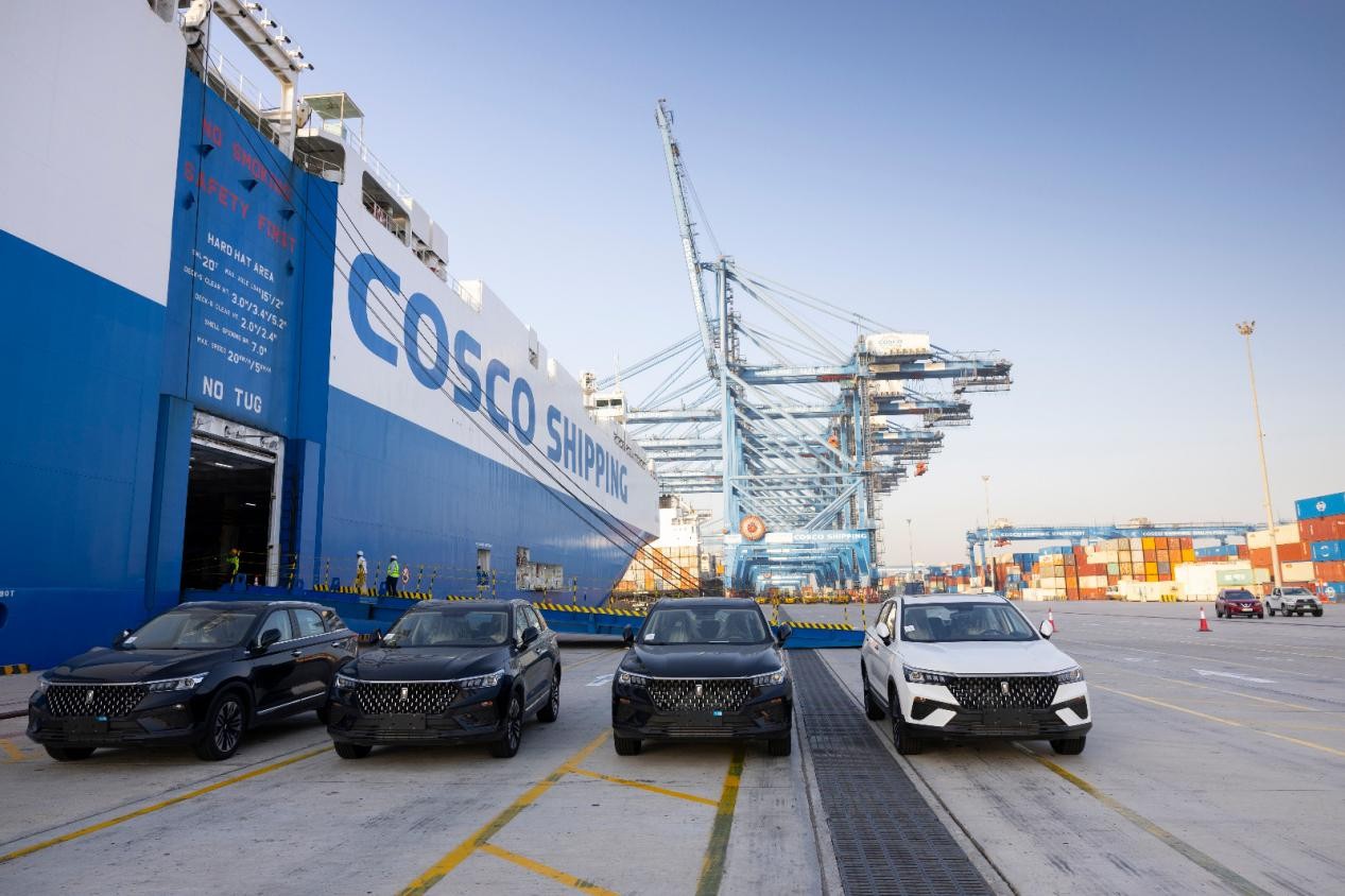 人民网迪拜9月28日电 (记者管克江)9月27日凌晨,中远海运特运旗下新一代LNG双燃料滚装船"黄河口"轮首次靠泊中远海运港口阿布扎比码头,成功卸下150辆中国一汽生产的红旗和奔腾品牌轿车。此次首航实现了绿色船舶与绿色港区的交汇,并以"中国船运中国车"的模式进一步完善汽车供应链服务体系。