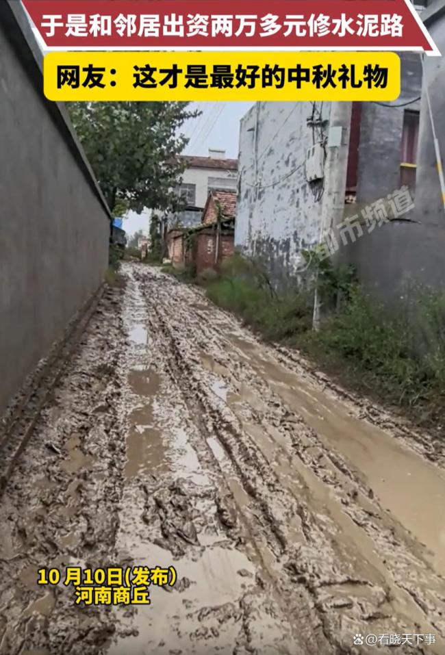 中秋假期,一名在外工作的男子回到河南老家,发现连日的雨水让村里的土路变得泥泞不堪。看到老人们艰难地在泥泞中行走,他心里很不是滋味,决定做点什么。