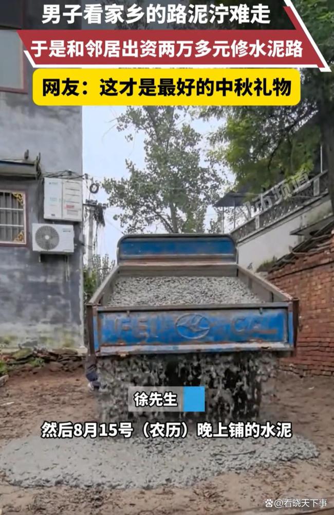 男子表示,虽然自己不常在家,但父母每天都要走这条路,过年过节自己也要回来。他认为这笔钱花得很值,不仅方便了大家,也方便了自己。这个决定并不是为了出名或留名碑,而是出于对家乡的一份责任和关爱。