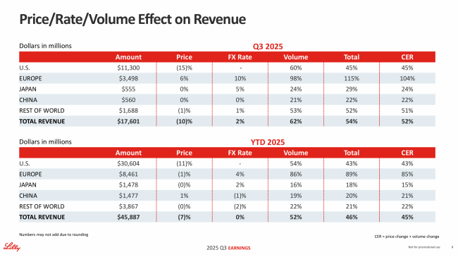 展望2025年全年业绩,礼来将全年收入预期从600-620亿美元再次上调至630-635亿美元。
