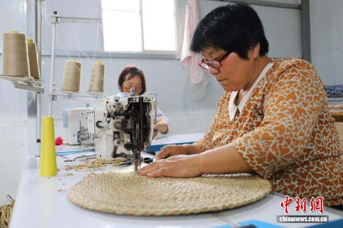 中新网济南12月11日电 (周艺伟)菏泽市郓城县潘渡镇杨庙村的盛泽工艺车间内,年过六旬的村民张英靠窗而坐,手指在蒲草间灵活穿梭。“在家闲着也是闲着,这儿干活不累,还是计件工资,多劳多得,既能赚零花钱补贴家用,又能随时照顾家里。”张英眉眼带笑,指尖不停。