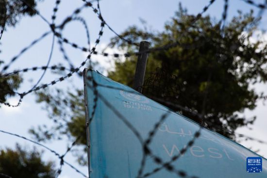 这是1月20日拍摄的位于东耶路撒冷的联合国近东巴勒斯坦难民救济和工程处标识。新华社记者 陈君清 摄