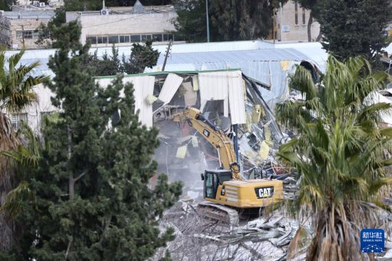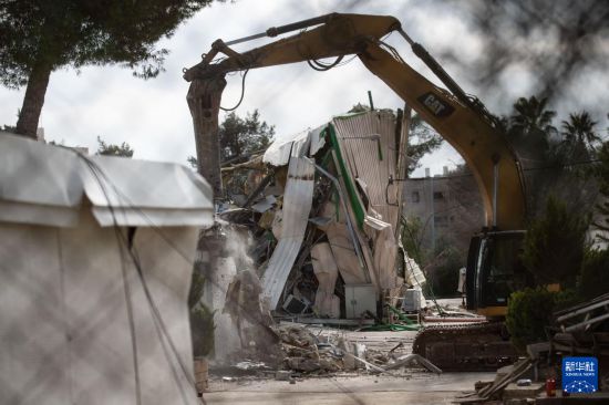 1月20日,以方拆除位于东耶路撒冷的联合国近东巴勒斯坦难民救济和工程处办公地。新华社记者 陈君清 摄
