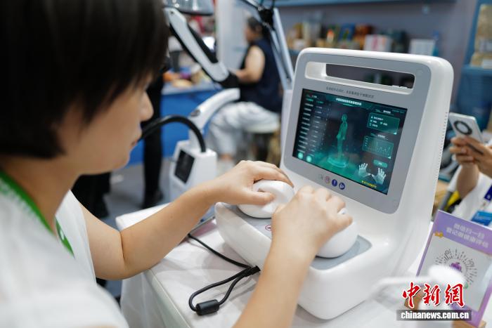 民众体验中医经络信息采集系统。中新社记者 张煜欢 摄