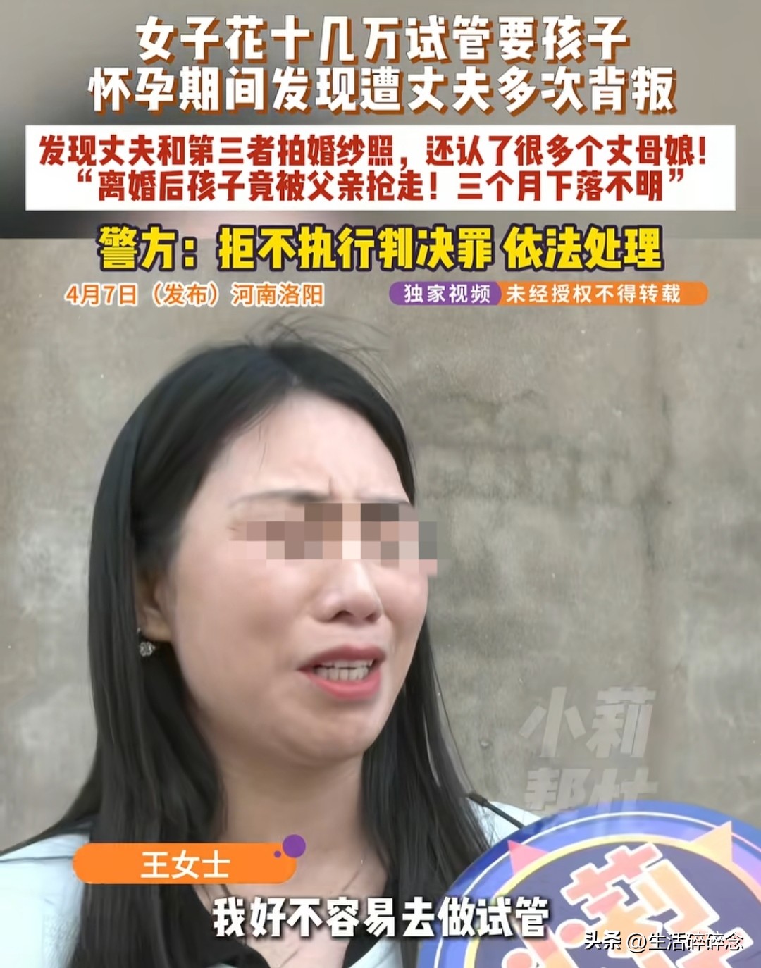 女子孕期得知丈夫出轨20余人!4月7日,河南洛阳,王女士花十几万做试管,打了500多针好不容易怀上孩子,刚刚发现怀孕,有个陌生女子加她微信,对方疯狂给发丈夫和她的不雅照,还跟20多个女性有不清不楚的关系,有6个手机号4个微信,甚至认了好几个丈母娘!