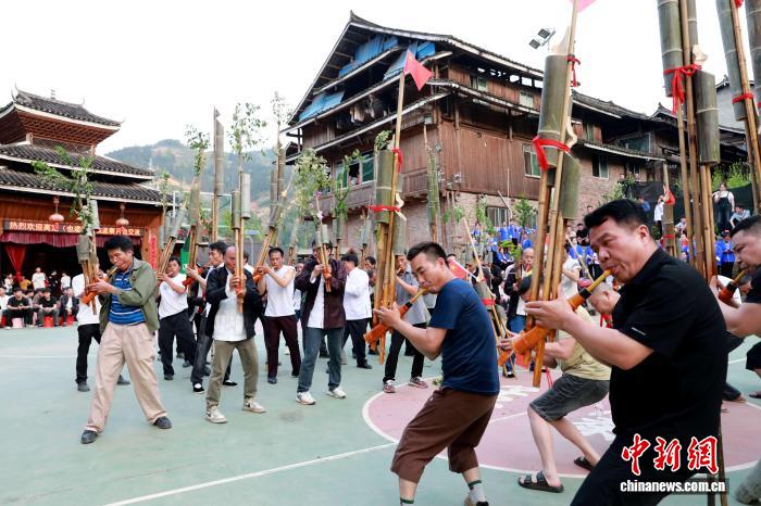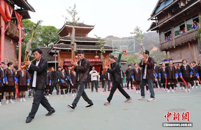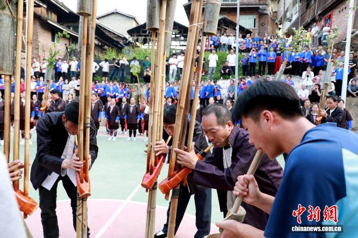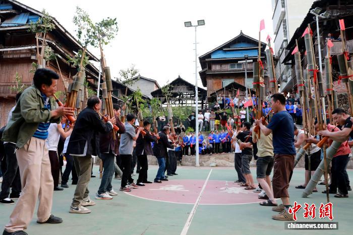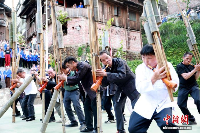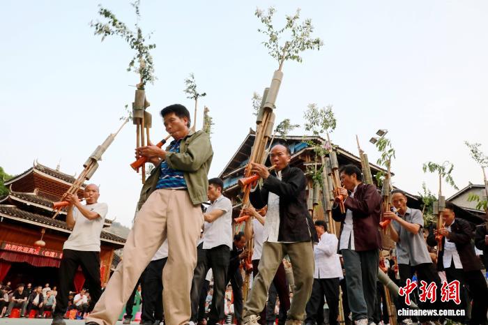 图为民众在吹芦笙。龚普康 摄