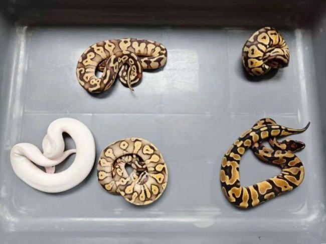近日,罗湖海关在一名进境旅客身上查获了五条濒危活体球蟒。这名男性旅客进入海关监管区时未向海关申报,并试图从远离关员的一侧快速通过。海关关员随即对其进行拦截检查。经过仔细搜查,在该旅客的背包内、右侧裤子口袋以及双脚踝处共发现用袜子包裹或捆绑的五条活体蛇。经深圳海关动植物检验检疫技术中心鉴定,这些蛇均为《濒危野生动植物种国际贸易公约》附录Ⅱ列明物种——球蟒。