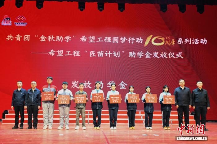 中新网哈尔滨3月27日电(姜辉 王丹阳)日前,共青团“金秋助学”希望工程圆梦行动10周年系列活动——希望工程“匠苗计划”助学金发放仪式在哈尔滨技师学院举办。
