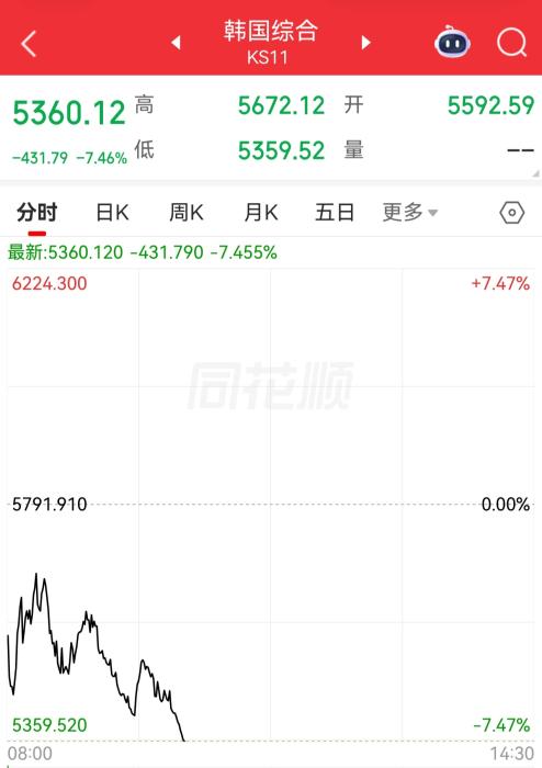 中新网3月4日电 美以空袭伊朗后,中东局势持续发酵,受此影响,韩国综合股价指数(KOSPI)4日盘中失守5400点。