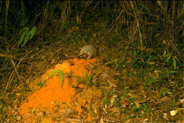 中新网广州4月16日电 (程景伟 林荫)广东省林业局16日公布一段珍贵影像,国家一级保护野生动物中华穿山甲在惠东乌禽嶂山林中忙碌“薅树叶”的画面清晰呈现:镜头中,一只穿山甲前爪快速扒拉落叶,尾巴稳稳支撑身体,憨