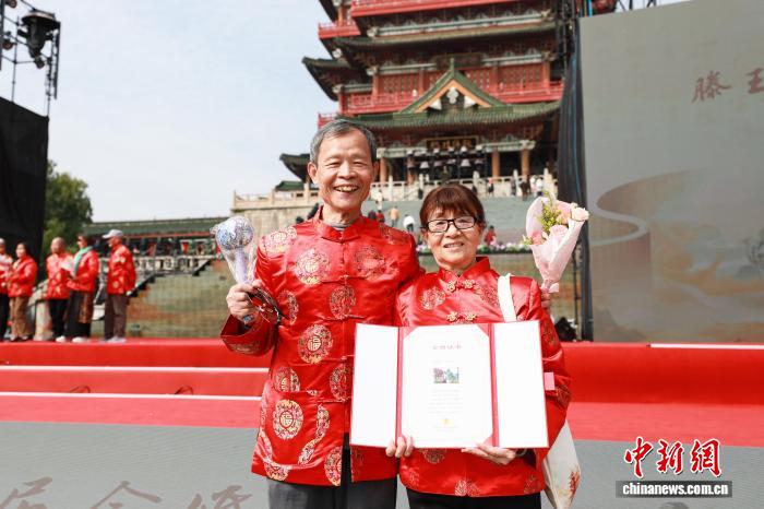 江西南昌:50对金婚夫妇齐聚滕王阁共度重阳佳节