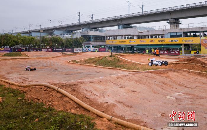 3月20日,2026SIGP三圈国际车辆模型(越野)大奖赛暨第二届厦门车辆模型大奖赛在福建厦门三圈ARC赛车场启幕。国内外行业嘉宾、专业车手与广大车迷聚首现场,共享激情赛事。图为赛车在比赛中。中新社记者 王东明 摄