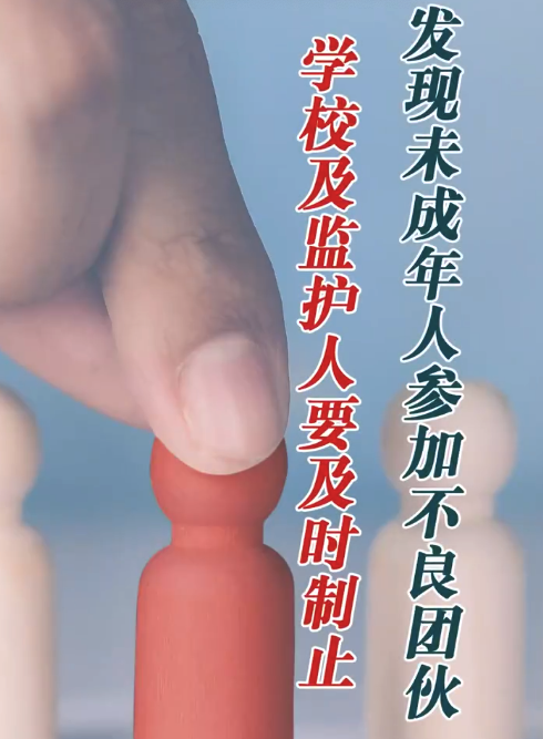 《中华人民共和国预防未成年人犯罪法》第三十七条:未成年人的父母或者其他监护人、学校发现未成年人组织或者参加实施不良行为的团伙,应当及时制止;发现该团伙有违法犯罪嫌疑的,应当立即向公安机关报告。...