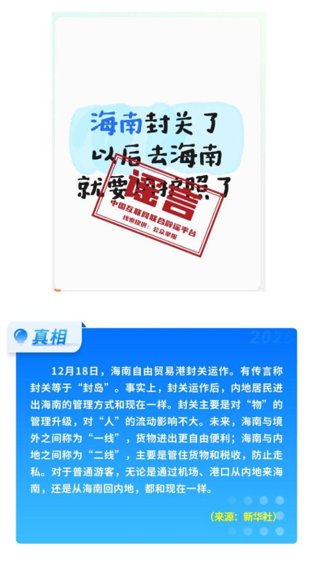 海南自由贸易港封关并不等于“封岛”,而是一些人对政策的误解。同样,“一次性信用修复”有严格的适用范围,并非所谓的“信用洗白”。关于12306购票取消靠窗选座的消息,实际上是购票界面进行了优化调整。网络上流传的一些谣言也引起了不必要的恐慌