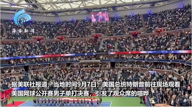 当地时间9月7日,美国总统特朗普前往现场观看美国网球公开赛男子单打决赛,引发观众席喧哗。由于加强了安保措施,排队时间延长,尽管主办方推迟了开赛时间,仍有不少普通观众错过了比赛开场