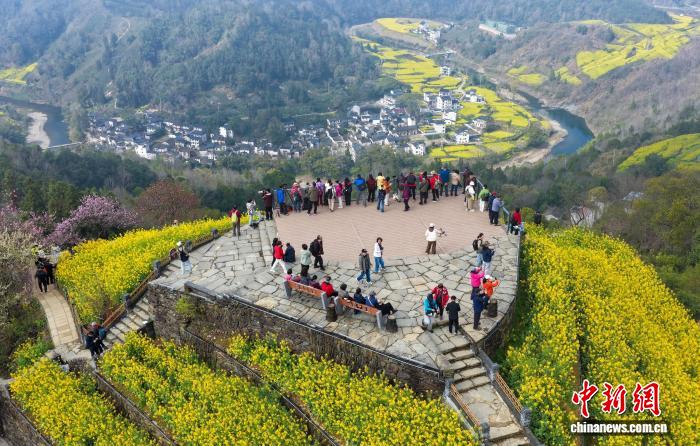 图为游客在观景台欣赏美景。(无人机照片)施亚磊 摄 图为云海景观。(无人机照片)施亚磊 摄