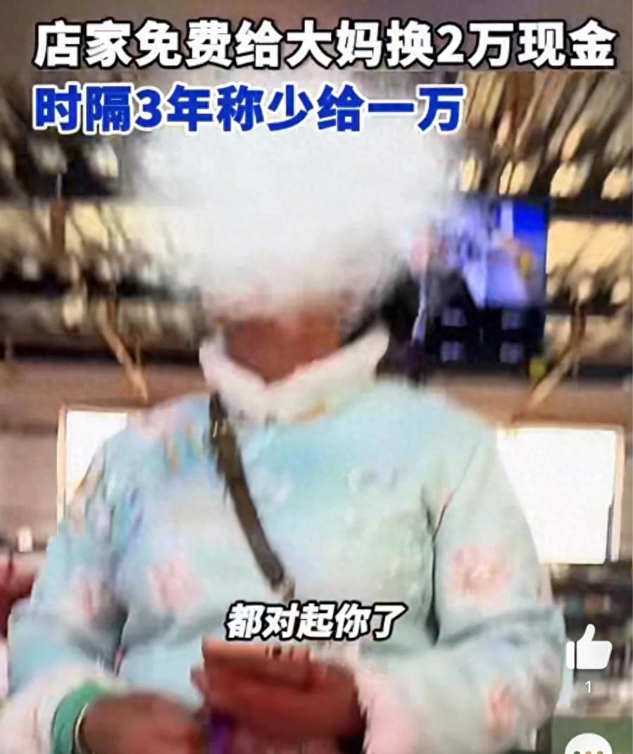 大妈换2万现金3年后称少给一万!12月1日,河南周口。店主郭先生称大妈2022年7月30号用微信分批给自己转了2万元,让给她换2万元现金,时隔3年多过来说当时少给她一万元,称当时大意了。郭先生说,对方经常来换钱,自己也不收手续费,3年多前的...