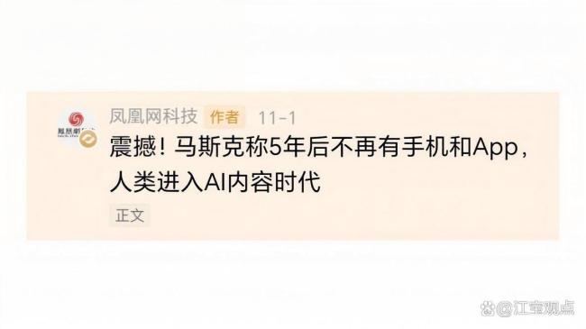 马斯克:5年后不再有手机和App AI重塑交互未来